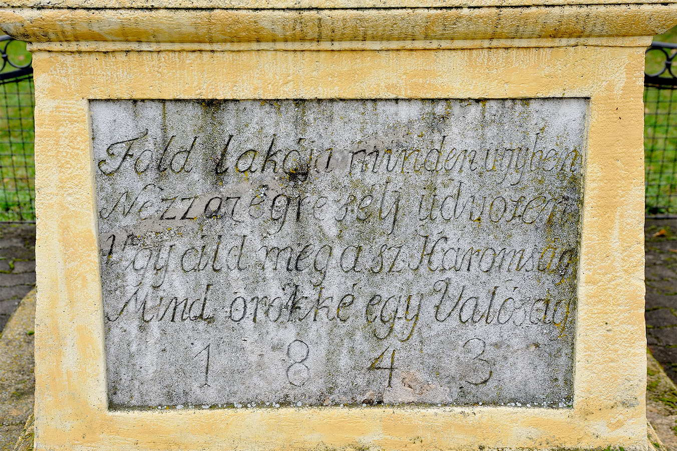Templom - külső látnivalókA Szentháromság szobor talapzata, felirata: