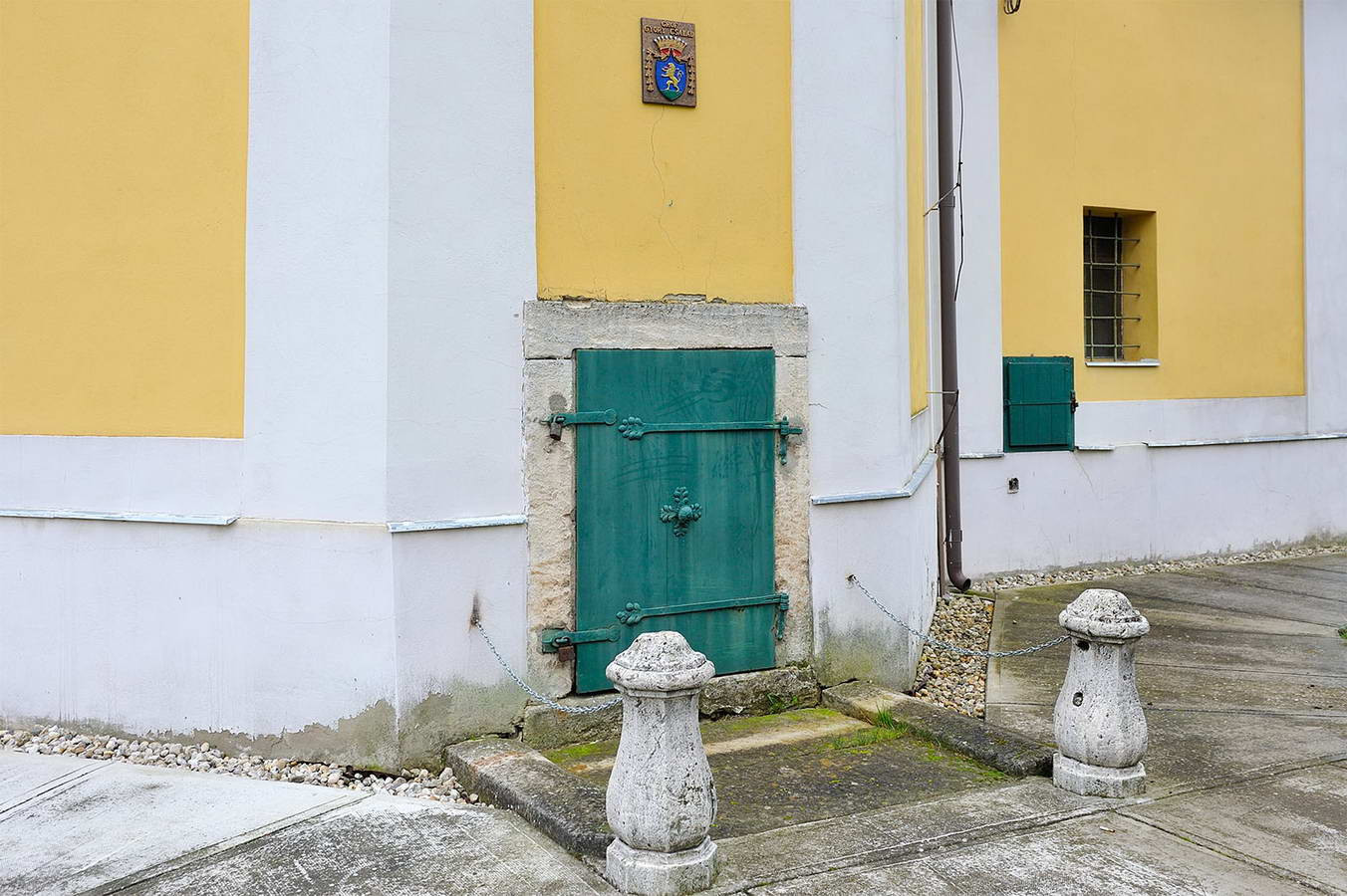 Templom - külső látnivalóka gróf Győry család, a templom építtetőinek címre a templom külső falán